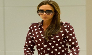 “辣媽”維多利亞身著Burberry秋冬愛心印花襯衫現(xiàn)身機場