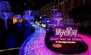 香港沙田新城市廣場(chǎng)星光花園筑起百米星光愛(ài)河