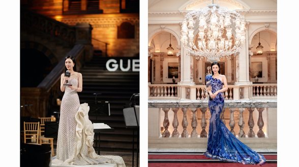 東方女性的“高定感” 田樸珺優(yōu)雅禮服造型亮相倫敦