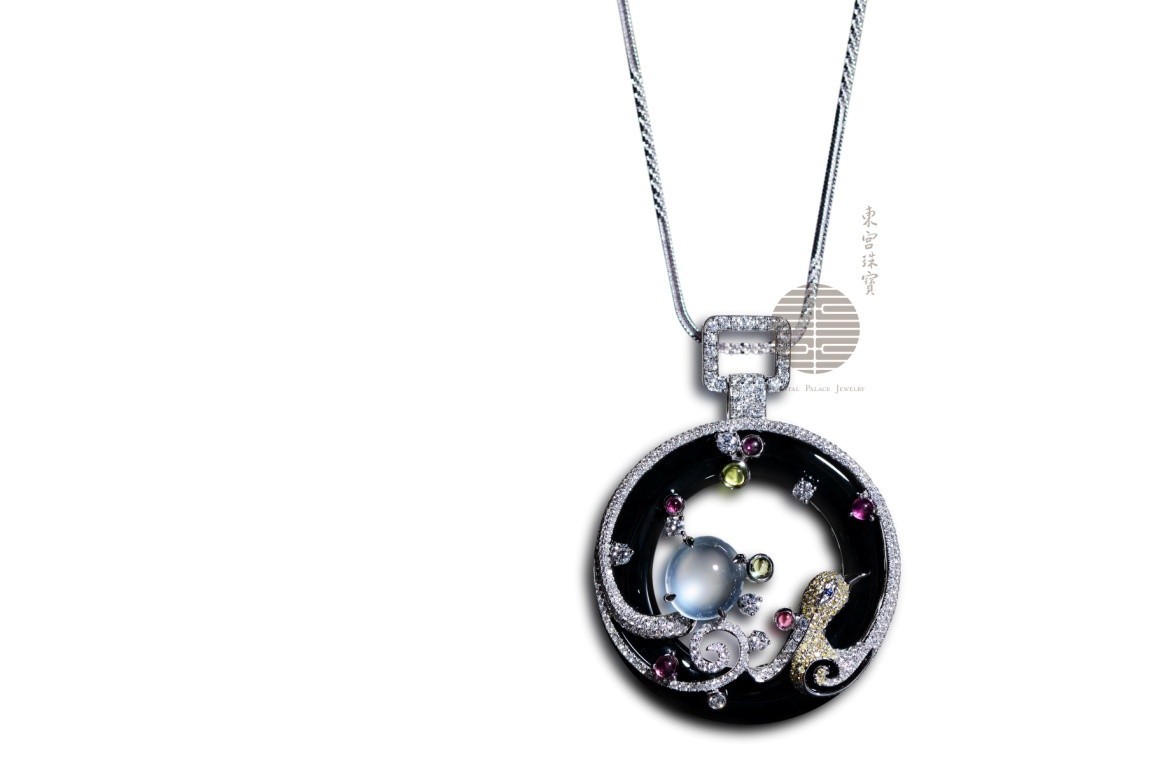 東宮珠寶【靈犀】墨翠吊墜,作品以傳統(tǒng)“丹鳳朝陽”題材為靈感,甄選頂級墨翠及無色玻璃種翡翠為主石,搭配多種珍稀寶石配鑲,將翩翩彩鳳的靈動生機表現(xiàn)的淋漓盡致?!暗P朝陽”題材在傳統(tǒng)文化中用以表示人們對光明未來、幸福生活的向往和追求。東宮珠寶也希望藉此作品表達自己的慈善態(tài)度,愿攜手“BAZAAR明星慈善夜”及各界愛心人士,以慈善的形式為世間播撒光明與希望。