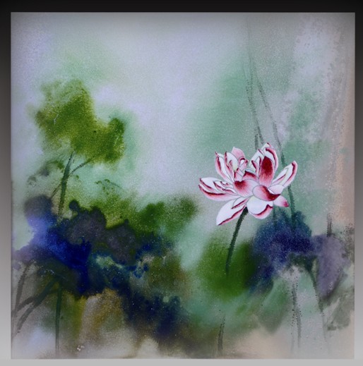 被譽為“火的藝術(shù)”的陶瓷藝術(shù),嫻熟工藝技法是能否創(chuàng)作出好的藝術(shù)作品的重要前提。王霽軒老師巧妙的運用高溫色釉的自然流動和互相融匯滲透的特點,將深厚的傳統(tǒng)文化修養(yǎng)與筆墨功力滲入釉彩,鋪染在造型古樸的瓷土基底上,再經(jīng)1300℃以上高溫燒煉,借天工之手得窯變之絢爛,出人意料而成其妙,合乎天機而顯其奧。為了將高溫色釉的流動抽象美更具表現(xiàn)力,他在瓷上以傳統(tǒng)的“粉彩”的裝飾手法用玻璃白表現(xiàn)生動自然結(jié)構(gòu)嚴謹?shù)奈锵?,充分利用材料對比、色彩對比、質(zhì)地對比、視覺空間對比的效果,使作品達到「天人合一」的境界。