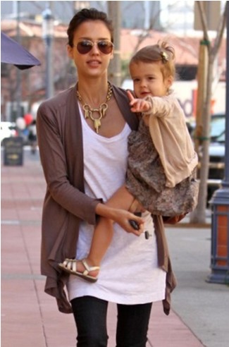 巨星杰西卡·阿爾芭的女兒穿著全套Bonpoint