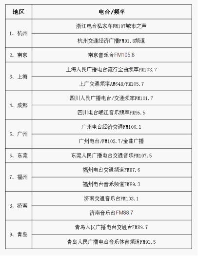 【歐司朗電臺廣告所覆蓋城市、頻道】
