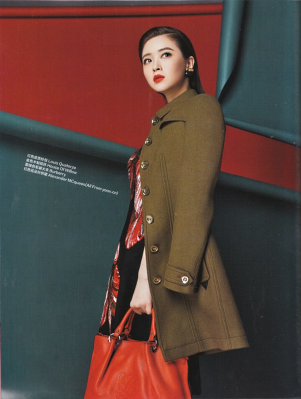 華妃娘娘蔣欣退下古裝變身時(shí)尚女神,高調(diào)演繹《時(shí)尚芭莎》雜志圣誕大片。片中娘娘霸氣氣場(chǎng)全開(kāi),冷艷知性的造型及犀利的眼神震撼人心。片中攜帶包款為法國(guó)名品LOUIS QUATORZE 提供。凌冽的灰色西裝大衣內(nèi)搭同色系西服內(nèi)搭,手挽EXOTIC 蜥蜴紋灰色手袋演繹冬日冰雪女神LOOK。挺括細(xì)呢軍裝外套配搭紅色軟皮LOIRE手袋,盡顯時(shí)尚女魔頭范兒。