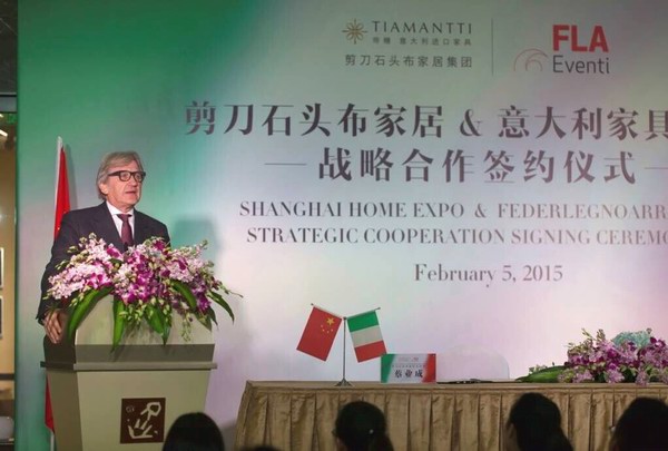 典禮當(dāng)日,意大利木業(yè)和家具工業(yè)聯(lián)合會主席Roberto Snaidero先生、意大利木業(yè)和家居工業(yè)聯(lián)合會首席執(zhí)行官Giovanni De Ponti先生親臨現(xiàn)場,體現(xiàn)此次與剪刀石頭布家居達成戰(zhàn)略合作的重視,以及對中國市場的信心。通過此次合作,剪刀石頭布家居將肩負起引進更多意大利頂級家具品牌、傳播意式生活文化給中國消費者的重任。同時2016年意大利精品家具展將落戶上海,屆時剪刀石頭布家居亦將成為領(lǐng)路人,其重要意義不言而喻。