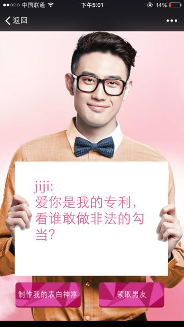 作為歐詩漫“我為女神狂”的大型網(wǎng)絡(luò)推廣互動(dòng)游戲的第三階段,歐詩漫表白神器、語音求愛這樣的方式將此前網(wǎng)絡(luò)爆紅的二次元男友們拉進(jìn)現(xiàn)實(shí)。你們不再是網(wǎng)絡(luò)互動(dòng)中渺小的一員,而是自己愛情故事里的主人公,希望通過這樣的方式,我們能找回愛本質(zhì),發(fā)現(xiàn)身邊的愛,愛無處不在,哪怕一句話,一個(gè)眼神,一個(gè)動(dòng)作,都是勇敢的表達(dá)……