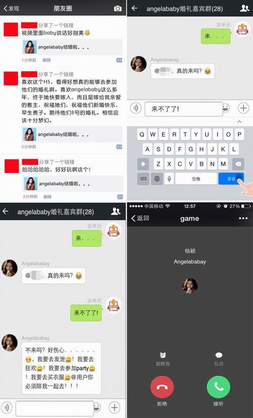 社交媒體上,夫妻兩人更是刷用戶眼球,從好友圈流行Angelababy婚禮來(lái)電call、以夫妻兩人結(jié)婚為點(diǎn)的微信互動(dòng)小游戲?qū)映霾桓F。近日,國(guó)內(nèi)最的社交媒體新浪微博上,以#angelababy大婚祝福#為話題的內(nèi)容是闖進(jìn)話題榜前10位