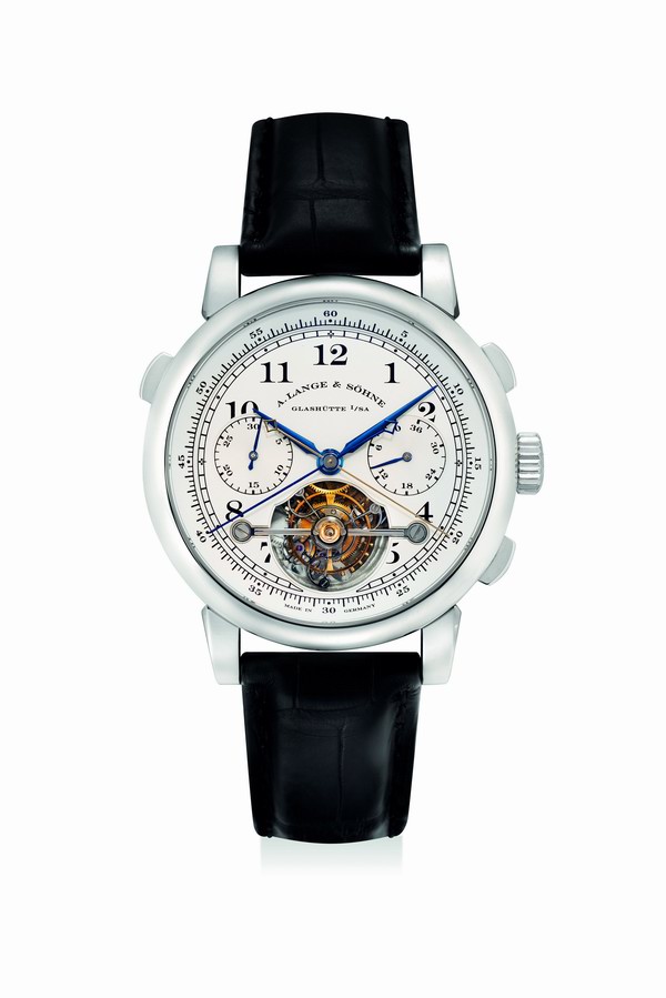 本拍賣亦網(wǎng)羅一眾現(xiàn)代經(jīng)典時(shí)計(jì),包括一枚朗格(A. Lange & S?hne)鉑金腕表,配陀飛輪、雙追針針時(shí)功能及"Tourbograph Pour le Mérite" 芝麻鏈傳動(dòng)系統(tǒng),型號702.025F,限量生產(chǎn)51枚,編號第23號,約2011年制(估價(jià):2,300,000 - 5,000,000港元,拍品編號338),必令藏家趨之若騖。