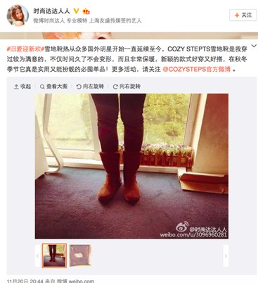 冬天來臨,廣大愛美女士們所關(guān)心的問題莫過于如何在溫度與風度見找到最佳平衡點。近日,全球知名雪地靴品牌、專注于優(yōu)質(zhì)雪地靴研發(fā)與制作技術(shù)的COZY STEPS發(fā)起了一場試穿活動,并吸引了眾多時尚達人的爭相參與,多位達人有幸獲取到試穿機會,率先體驗到了COZY STEPS雪地靴的溫暖呵護與舒適享受。