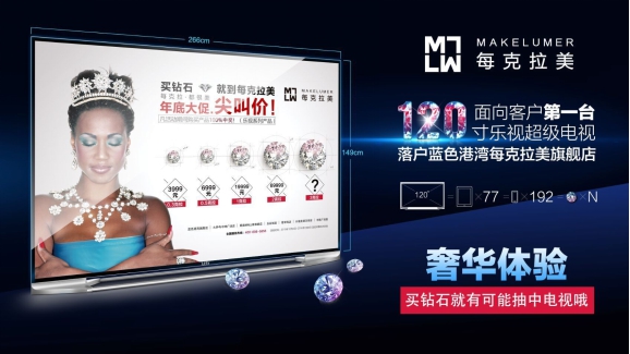 標(biāo)簽:每克拉美    樂視    120寸樂視超級(jí)電視    uMax120    每克拉美藍(lán)色港灣旗艦店    珠寶行業(yè)    鉆石品牌