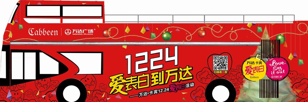 想“脫光”、想“表白”的各位,只要掃描報(bào)紙廣告上的二維碼之后填寫(xiě)資料,即可在24日當(dāng)天免費(fèi)乘坐“愛(ài)·表白”專(zhuān)線雙層巴士前往廣州白云萬(wàn)達(dá)廣場(chǎng)參加平安夜狂歡活動(dòng):與大家一起“大聲說(shuō)愛(ài)”!在特別營(yíng)造的“漫天飛雪”氣氛中,如在現(xiàn)場(chǎng)大膽表白,會(huì)被拍攝成視頻,并推上優(yōu)酷視頻首頁(yè),幫你高調(diào)示愛(ài)!