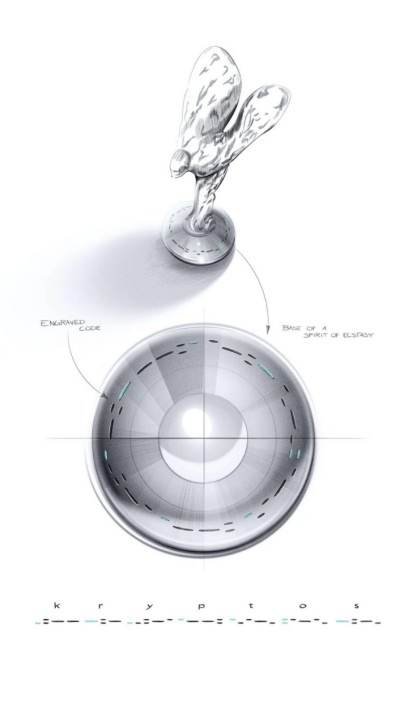 在魅影“隱匿之鑰”特別版充滿神秘色彩的歡慶女神底座上,以綠色琺瑯鐫刻著KRYOTOS的密文。該七個(gè)字母的密碼譯文,和頭枕上意為“雙R”的密碼刺繡,所組成的線索,將有助于客戶破譯魅影“隱匿之鑰”內(nèi)飾中絲網(wǎng)印花金屬飾板上的密碼,并可由此開啟解密之旅。