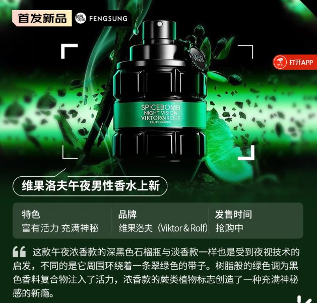 維果洛夫(Viktor & Rolf)這款午夜?jié)庀憧畹纳詈谏衿颗c淡香款一樣也是受到夜視技術的啟發(fā),不同的是它周圍環(huán)繞著一條翠綠色的帶子。樹脂般的綠色調(diào)為黑色香料復合物注入了活力,濃香款的蕨類植物標志創(chuàng)造了一種充滿神秘感的新癮。