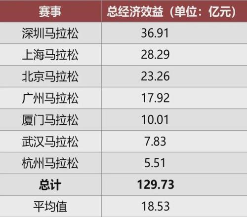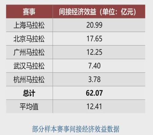 而據(jù)中國田徑協(xié)會不完全統(tǒng)計,截至2024年12月20日,全國舉辦的10項國際金標及以上馬拉松賽事,直接經(jīng)濟效益總計為54.30億元,間接經(jīng)濟效益中,賽事產(chǎn)出效應(對GDP的貢獻)125.39億元,賽事就業(yè)效應(因賽事而新增就業(yè)崗位數(shù))5.58萬個。