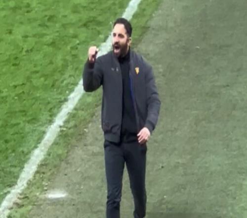 阿莫林在進入球員通道前,忍不住激情地朝著斯特雷特福德看臺大喊“加油(Come on!)”。